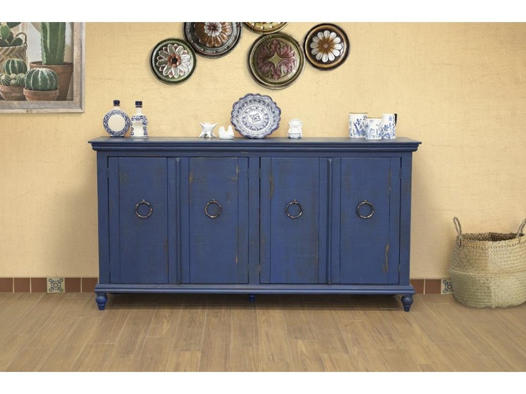 Multi-step hand-applied dark blue finish.