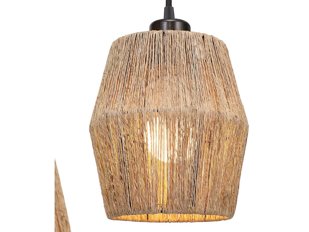 Product Description: This unique floor lamp is the perfect choice if you are looking for something extra special. The beautiful oil rubbed bronze finish with gold highlights is enhanced by three drum shaped shades. The shades are constructed with tightly strung narrow rope and provides the perfect amount of light. This is sure to be a conversation piece.