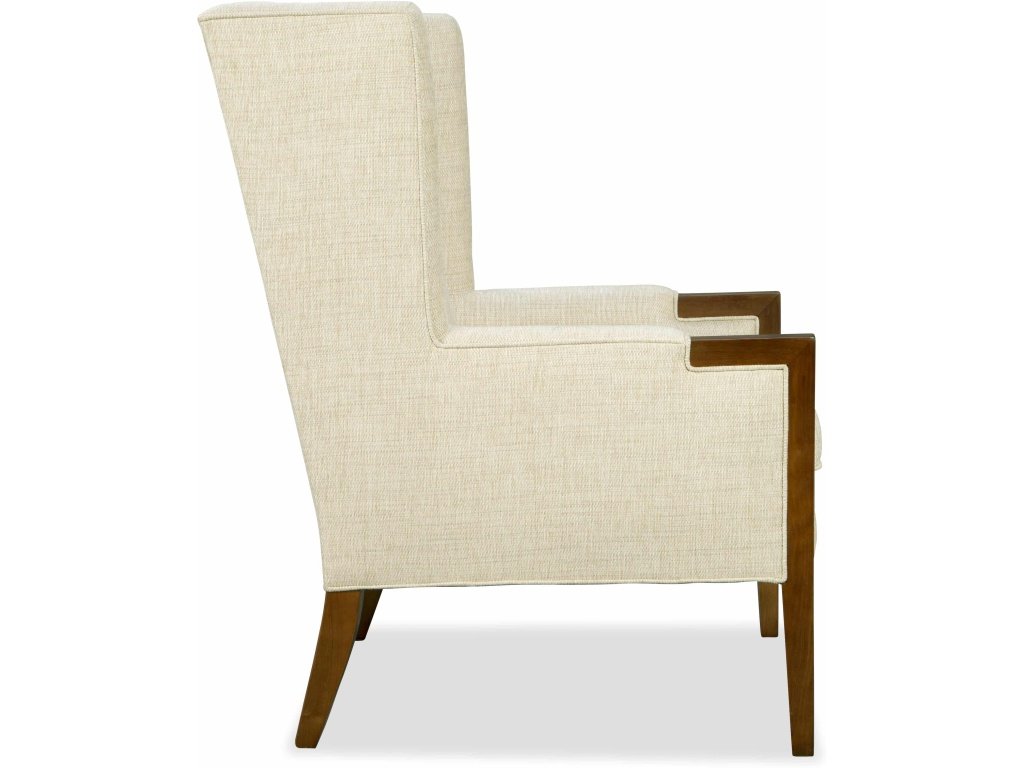 Product Description Classic elements take a modern turn with this impressive wing chair. It features bold wood accent detailing and crisp, clean lines to give a familiar, but fresh take on this timeless style. Plush Blend-Down seat cushions offer comfort and refuge as you relax.