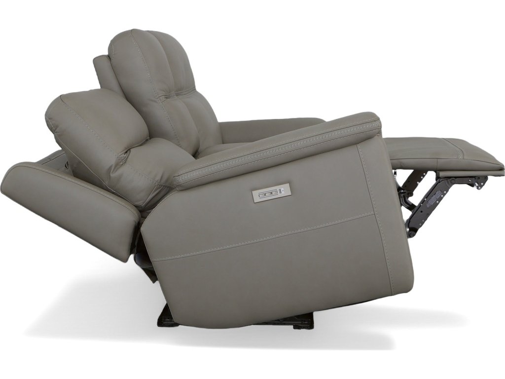 The Flexsteel Living Room Sawyer Grey Leather Pwr Recl Loveseat w/ Console, Pwr Hdrsts, Lumbar is available in the Oaklyn, NJ area from Nastasi's Furniture. Please request information here or call our store to verify availability.