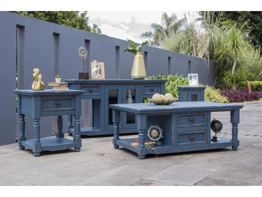 Product Description: The Aruba collection is inspired by the grandeur of the Old World. Each piece is meticulously crafted from 100% sustainable mango wood. Our case goods boast elegantly hand-turned details that add a touch of sophistication to any space. The enchanting blue finish further enhances the inherent beauty of the mango wood, creating a truly distinctive texture and depth.