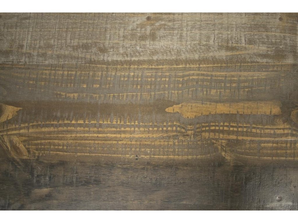 Multi-step hand-painted water-based acrylic lacquer finish in gray and brown tones for an updated “reclaimed wood” look.