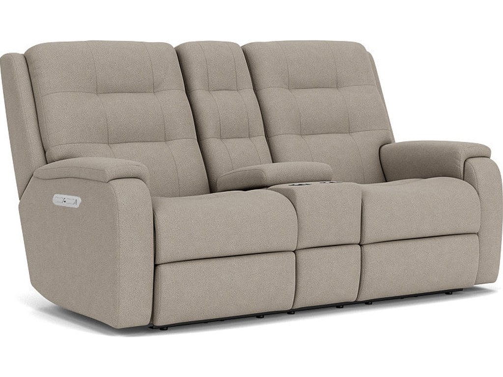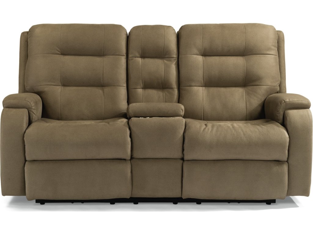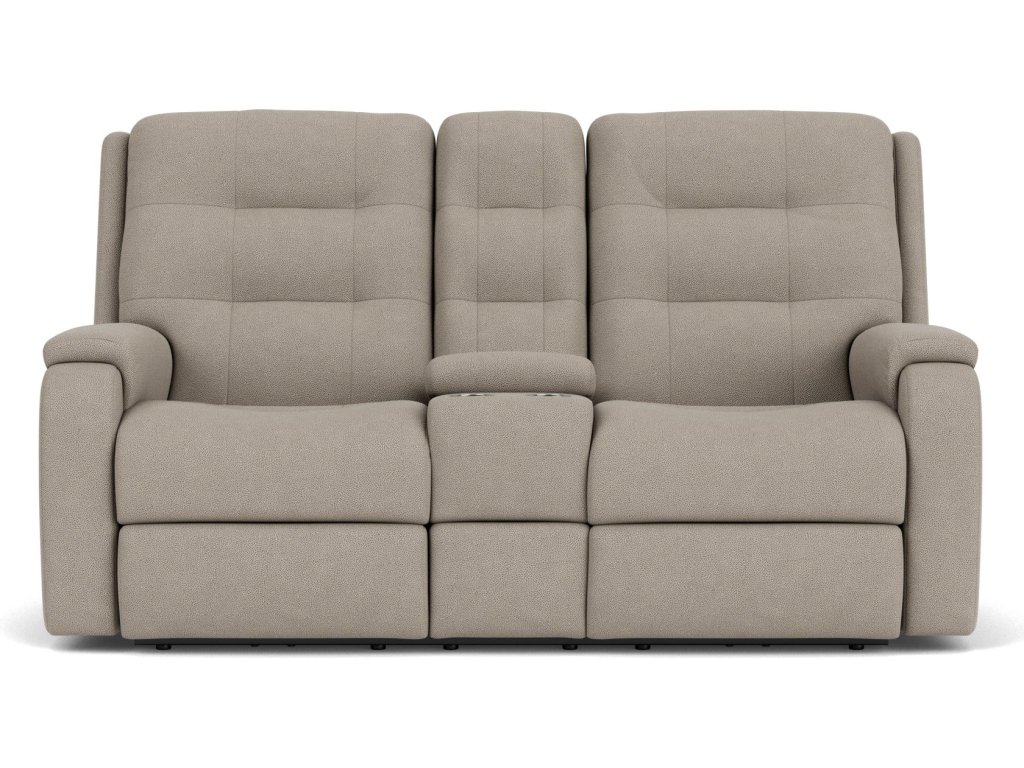 The Flexsteel Living Room Arlo Fabric Power Reclining Loveseat with Console & Power Headrests & Lumbar is available in the Oaklyn, NJ area from Nastasi's Furniture. Please request information here or call our store to verify availability.
