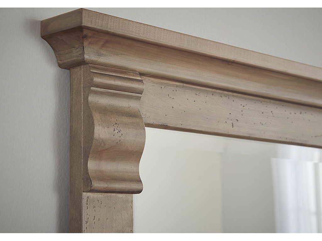Product Description Complete your bedroom collection by placing this mirror on top of your dresser or chest. Featuring a frame crafted from solid wood and beveled glass; this mirror captures the perfect mix of traditional and rustic style. Bleached grey tones are reminiscent of sunbaked driftwood.