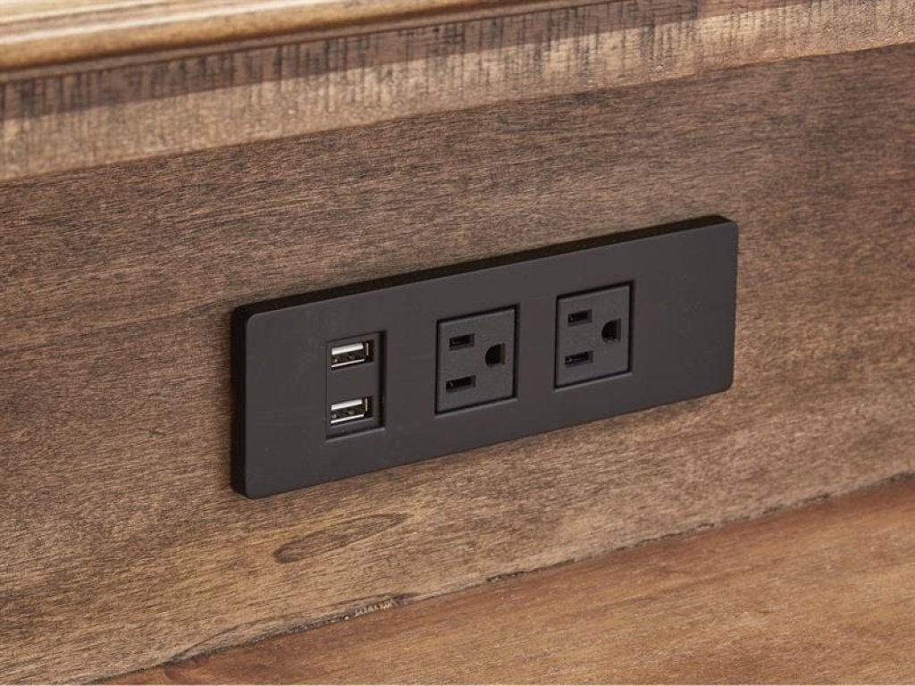 Construction 3 top felt lined drawers. 2 wood doors; 1 adj. wood shelf behind each door. 1 drop down drawer front using adj. height keyboard slides with appearance of 3 drawers. power supply including USB charger with paper management inside the drop down drawer. robust PU wrap on top drawer front, door fronts and posts with nailheads trimming. 4 bottom drawers. tinted drawers with french dovetail in front and english in back. side mount ball bearing guides. sealed case piece. support leg with levelers. wire management. levelers. weight capacity: 150 lbs for top, 100 lbs for shelf.