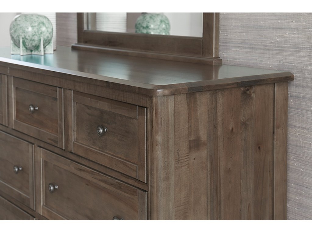 Product Description: Master dresser with solid beveled edge top with framed drawer fronts adorned with distinctive graphite drawer pulls