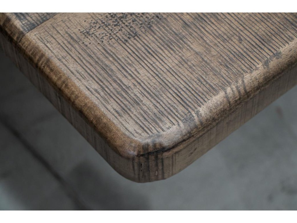 Features Wire brushed multi-step lacquer finish in brown.