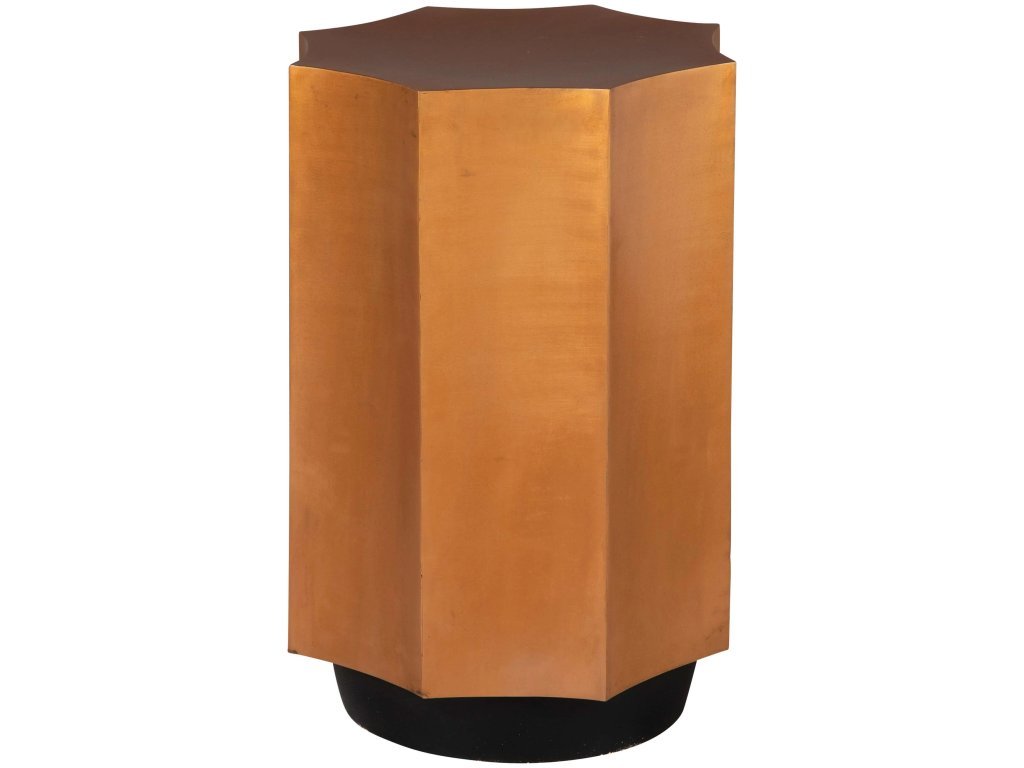 • Metal table comprised of iron sheet metal shaped in flutes with an aged copper finish.