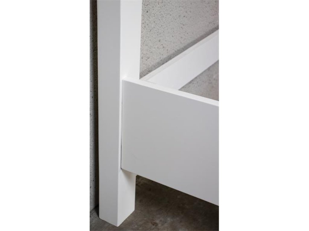 Bed is elevated off the floor to give it a light airy appearance