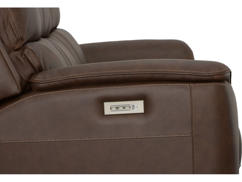 The Flexsteel Living Room Henry Burnt Umber Leather Power Reclining Sofa with Power Headrests & Lumbar is available in the Oaklyn, NJ area from Nastasi's Furniture. Please request information here or call our store to verify availability.