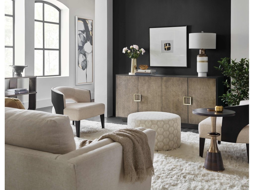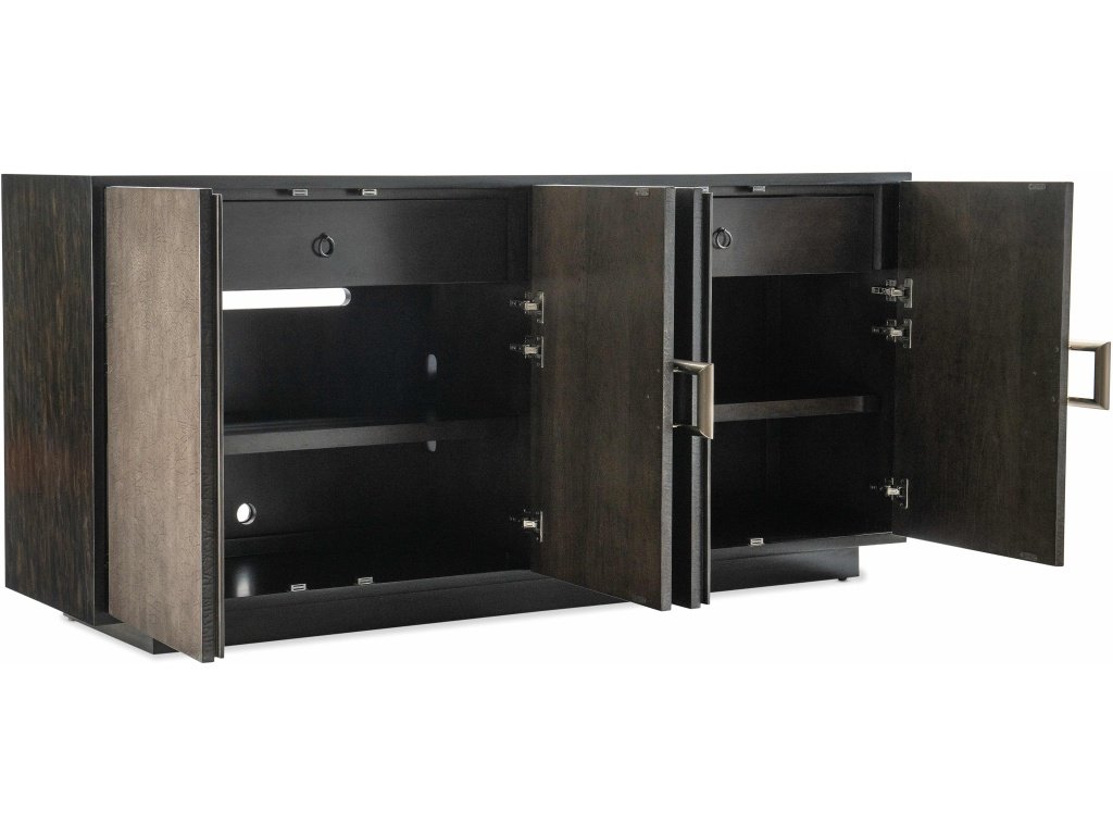 The Hooker Furniture Living Room Melange Asher Four Door Entertainment Credenza is available in the Oaklyn, NJ area from Nastasi's Furniture. Please request information here or call our store to verify availability.