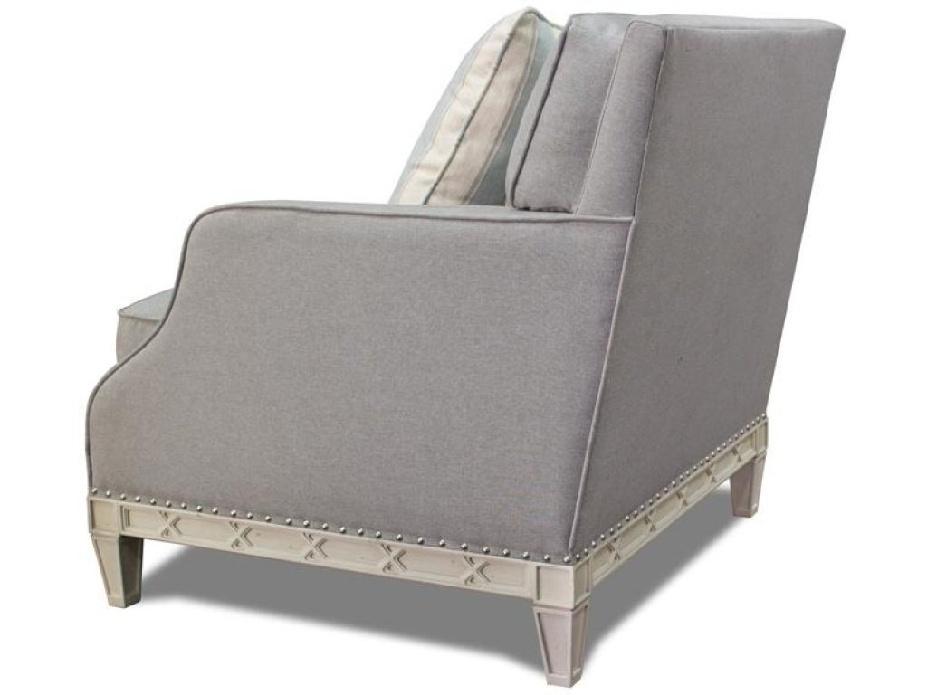 Collection Feature: Understated elegance is personified in Hancock Park with unique tailoring details and exposed wood base frames. A lovely Pewter base cloth is the backdrop for cool spa shaded accent pillows and the sloping clipped arms gracefully come down the base to rest upon a carved antique white painted frame. A tight back adds simplicity and formality above sumptuous and generous loose cushion reversible seats on the sofa, loveseat and chair while two wonderful accent chairs with exposed wood complete the ensemble.