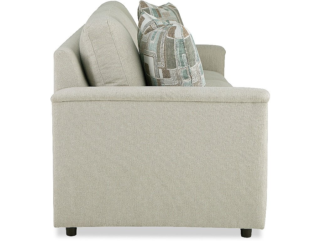 Product Description: Designed to fit smaller living spaces, this 79" sleeper sofa features padded track arms, loose back pillows, French seaming, and plush Comfort Soft cushions. Sleeper mechanism features an adjustable head rest. Also available in two other arms styles- see styles 737050-68 and 738050-68. Also available are the matching sofa, loveseat, chair, swivel chair, ottoman, cocktail ottoman, lift top storage ottoman, and sectional.