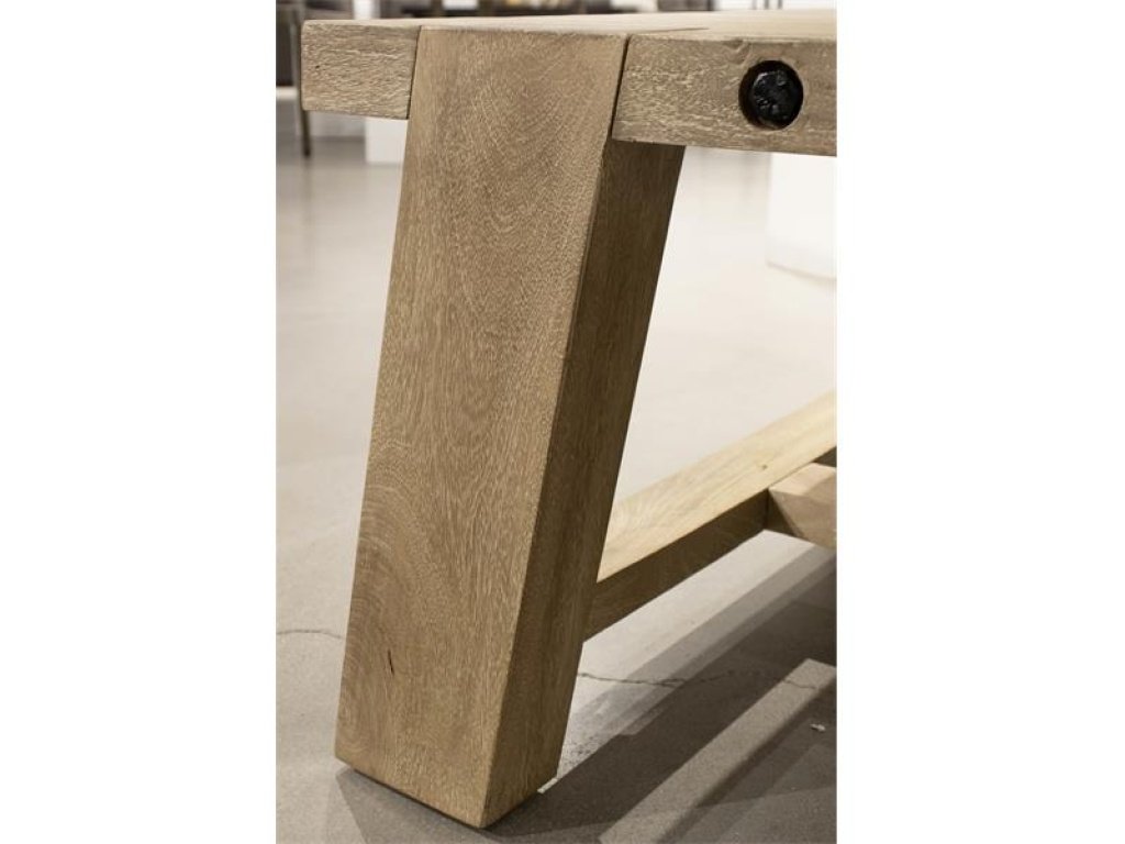 The over-scaled splayed legs give a subtle nod to timber trusses