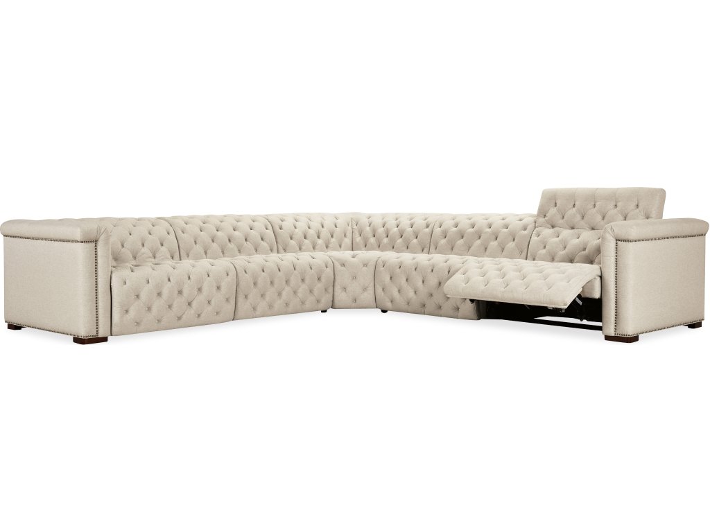 The Hooker Furniture Living Room Savion Deux 5 Seat Sectional with Three Power Recliners and Six Power Headrests is available in the Oaklyn, NJ area from Nastasi's Furniture. Please request information here or call our store to verify availability.