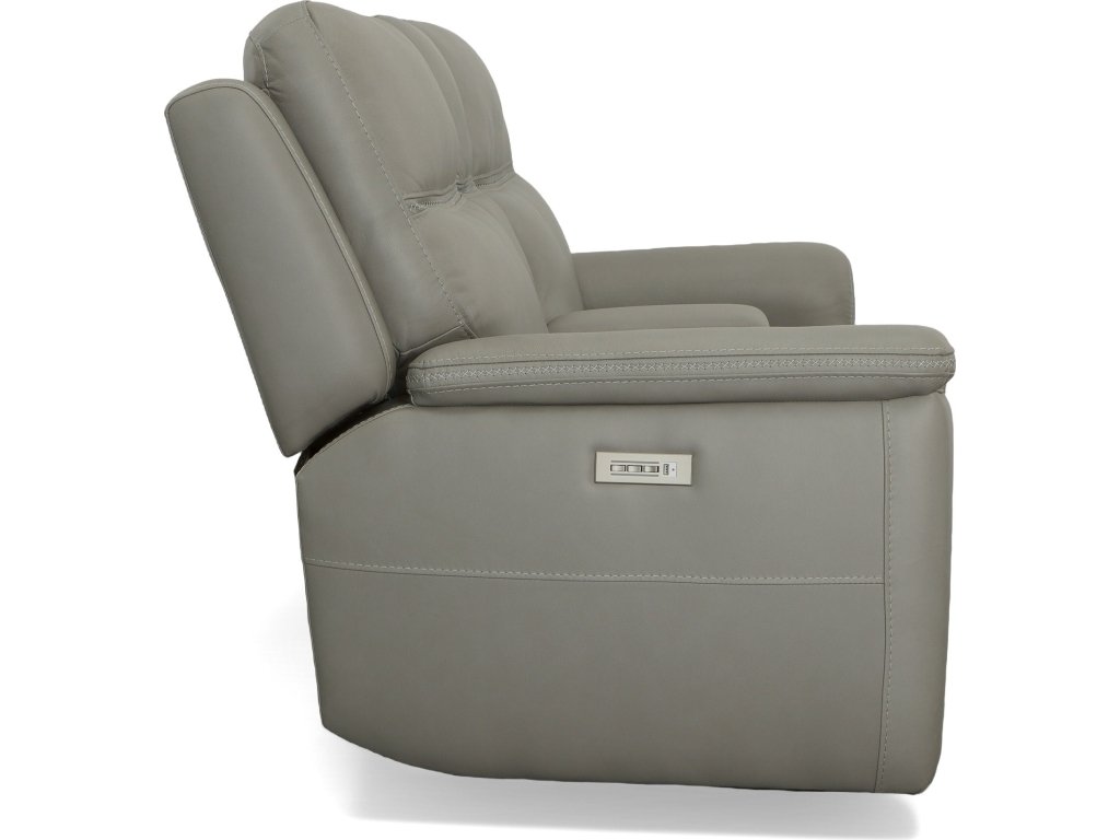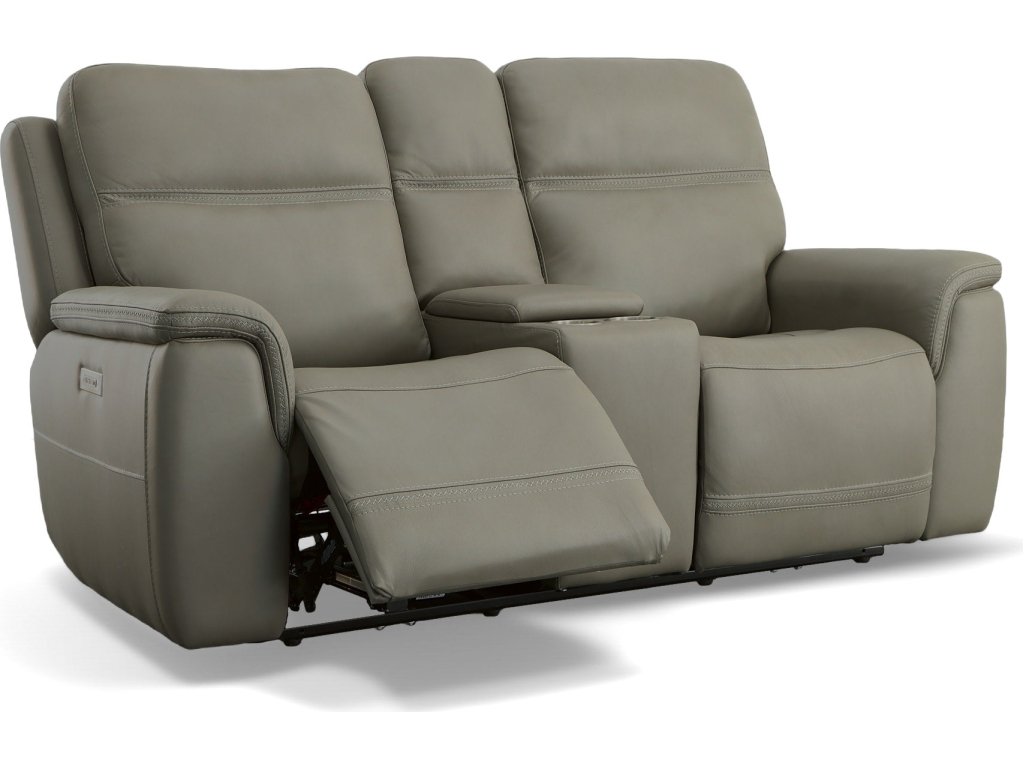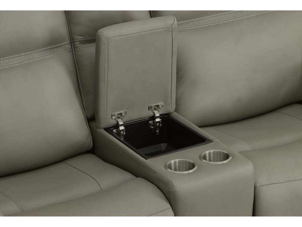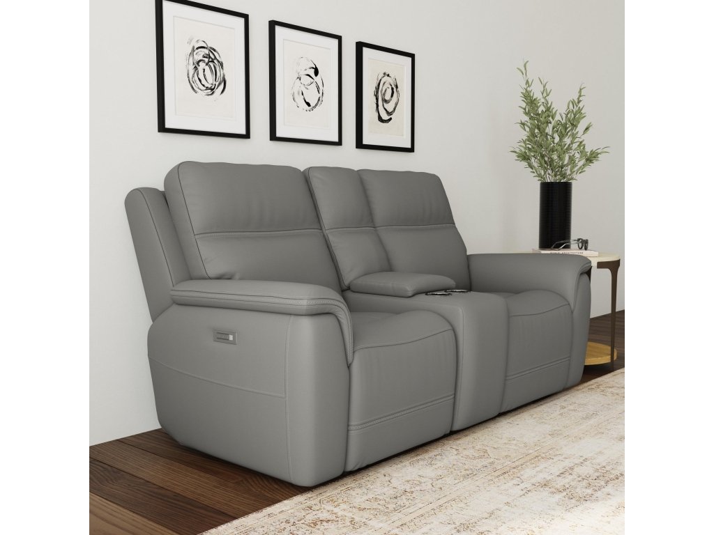 The Flexsteel Living Room Sawyer Grey Leather Pwr Recl Loveseat w/ Console, Pwr Hdrsts, Lumbar is available in the Oaklyn, NJ area from Nastasi's Furniture. Please request information here or call our store to verify availability.