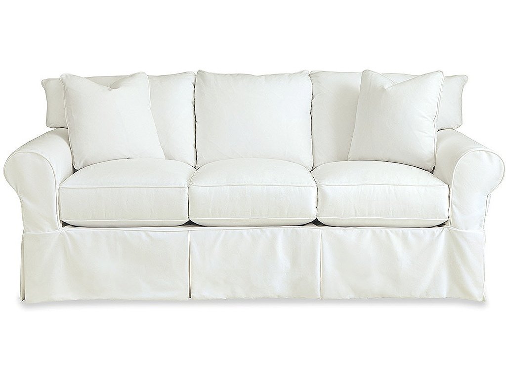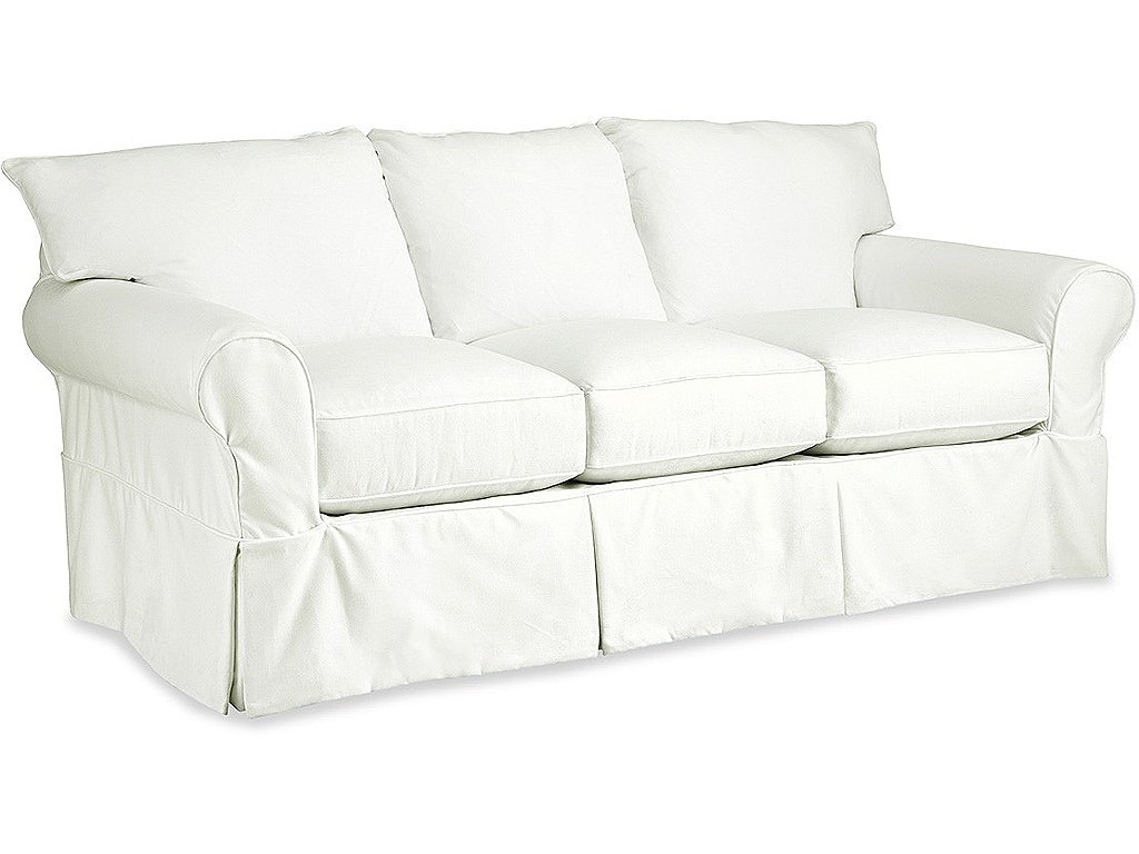 Product Description Simplicity and plush comfort are the reasons for this sofa's mass appeal. Featuring a true removeable slipcover, that fits snugly with Velcro attachments in key areas, it can be ordered in any of our fabrics (including a few that are machine washable!) It features loose bed pillow backs and super soft Blend Down seat cushions for enhanced comfort, as well as two Blend Down toss pillows for a welcoming touch. Sock arms and a relaxed waterfall skirt compete the familiar look of this casual and versatile sofa. You will love coming home to this fresh and inviting look. Also available in a 2 seat/2 back version and a bench seat/2 back version. Also available are the matching loveseat, chair, ottoman, and sleeper sofa.