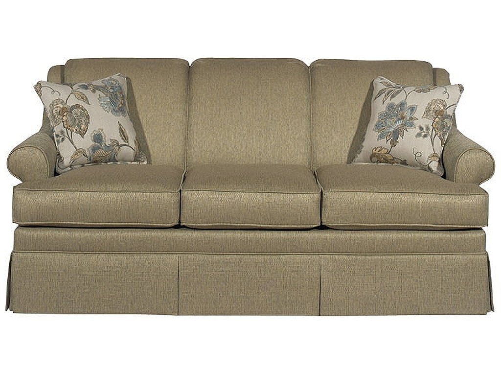 Product Description When only traditional will do, this classic sofa is a perfect fit. Measuring 73'' in length, it's a great choice for small spaces. It features a plush tight back and elegant curved wings, as well as a simple sock arm and pleated skirt. Also available as a full size sleeper! Matching loveseat, chair and ottoman available as well.