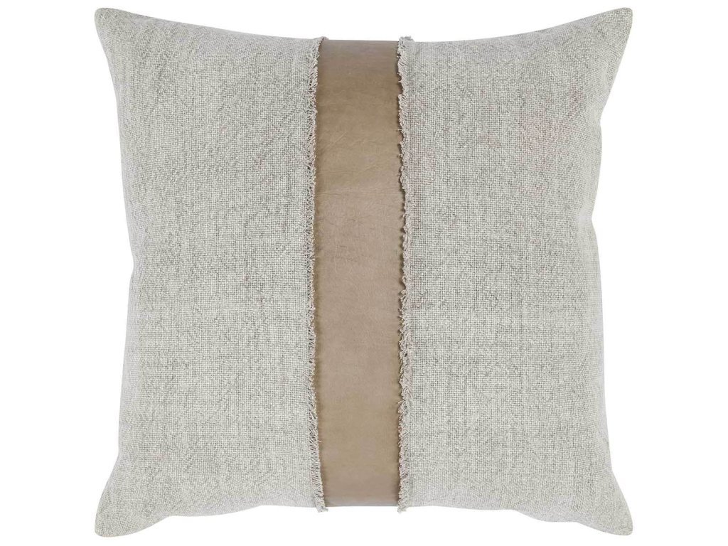 Product Description: A casual twist on leather, the Steam Pillow marries linen and leather with a pieced fabric application and frayed fringe detail to create a fresh look. Finished with a knife edge treatment and hidden zipper closure. Available in 2 colorways as cover only or with a luxury down insert.