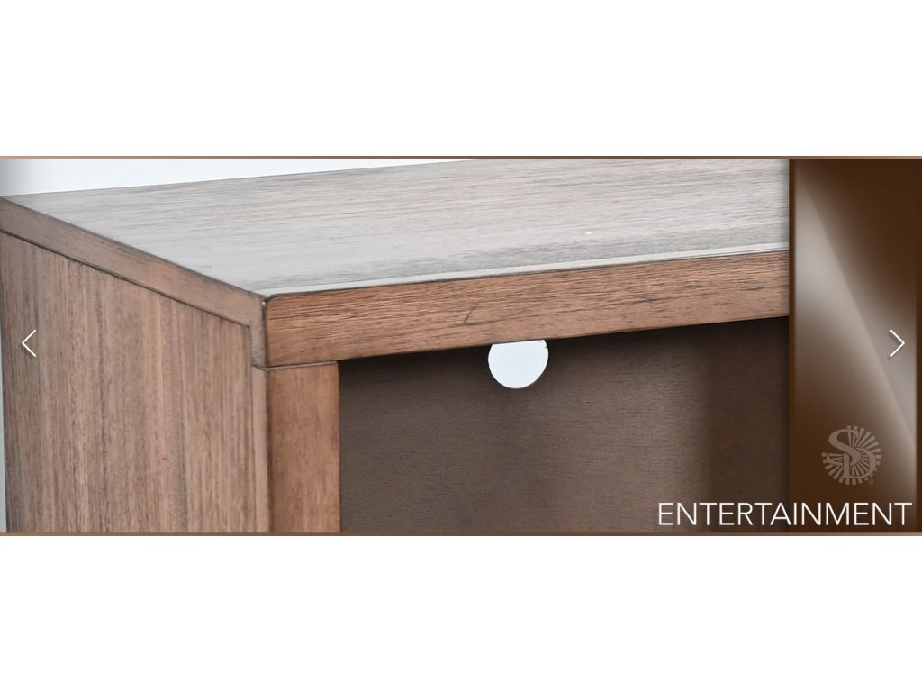 • Mahogany solids and veneers Cord management Adjustable shelves 2 sliding doors w/ wooden slot panel Buckskin finish |