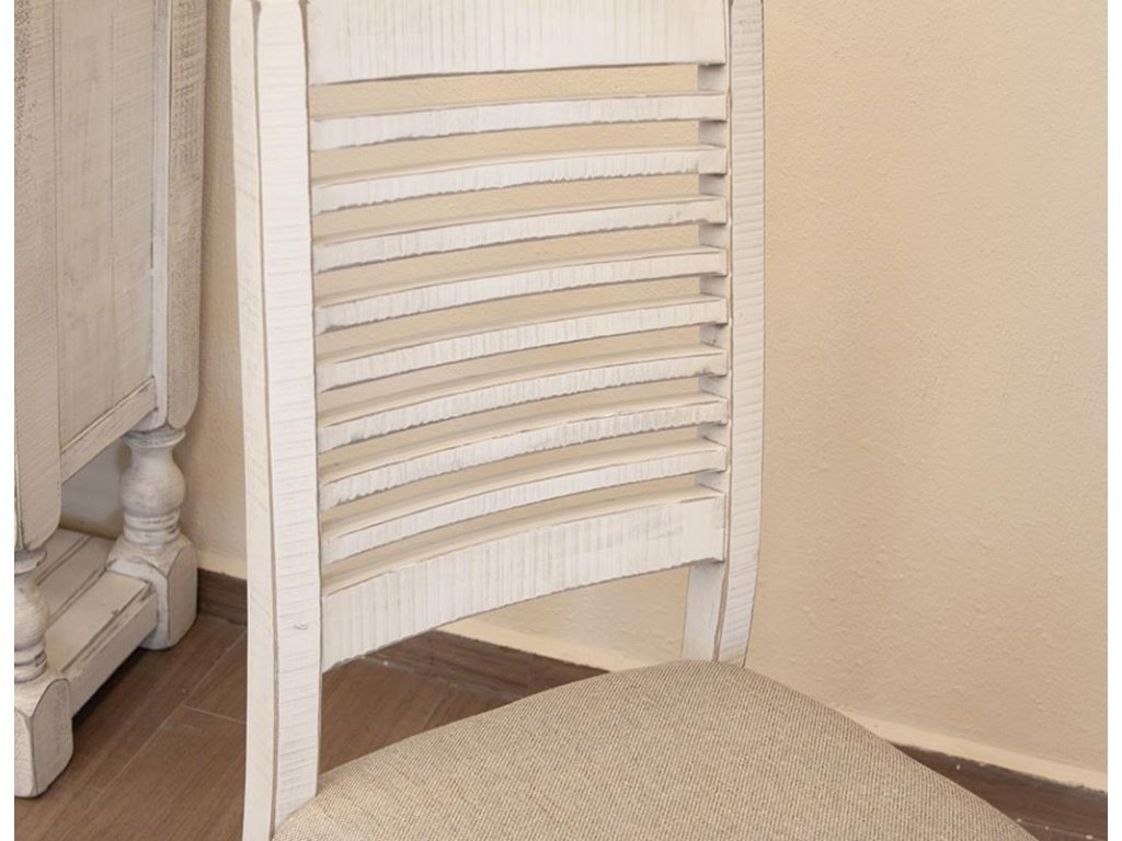 Two-tone finish features a hand-rubbed off white finish