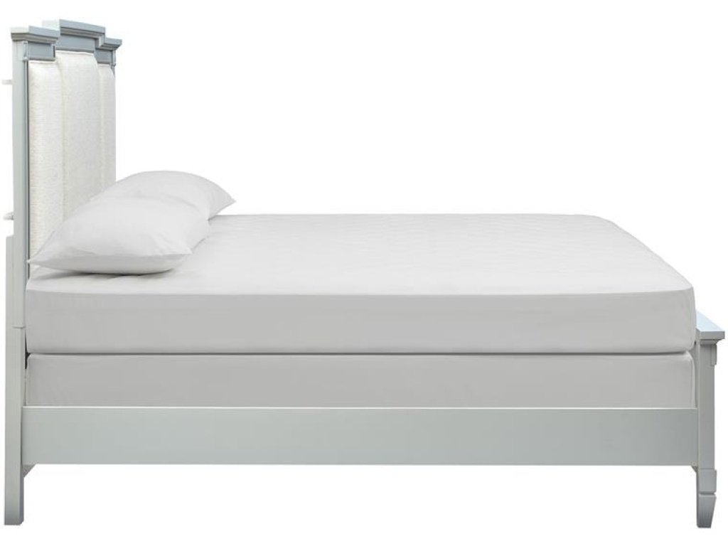 The Magnussen Home Bedroom Wood Queen Panel Bed Upholstered Headboard KD is available in the Oaklyn, NJ area from Nastasi's Furniture. Please request information here or call our store to verify availability.